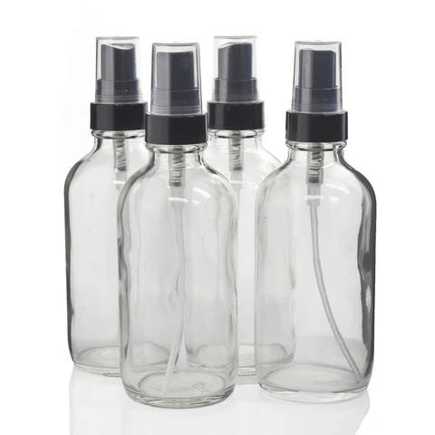 โรงงานผู้ผลิต ขายส่ง OEM ขวดแก้วใสสำหรับน้ำหอมและน้ำมันหอมระเหย ขนาด 120 มล. 4 ออนซ์ พร้อมหัวฉีดสเปรย์สีดำ