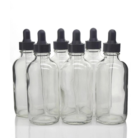 ผู้ผลิต ODM OEM ขายส่งขวดแก้วใสทรงบอสตันขนาด 120 มล. 4 ออนซ์ สำหรับน้ำมันหอมระเหย พร้อมหลอดหยดพลาสติกสีดำ