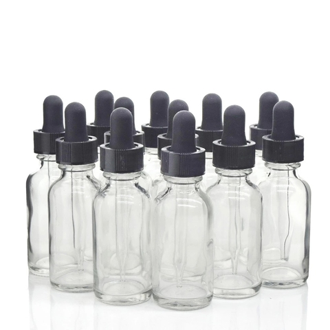 โรงงานผู้ผลิต ODM ขายส่งขวดแก้วใสขนาด 30 มล. 1 ออนซ์ สำหรับน้ำมันหอมระเหย พร้อมหลอดหยดพลาสติกสีดำ