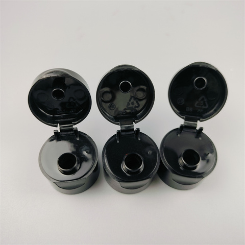 24/410 도매 화장품 로션 플립 캡 젖빛 검은 접시 세척 액체 모자 플립 상단 플라스틱 손 소독제 모자