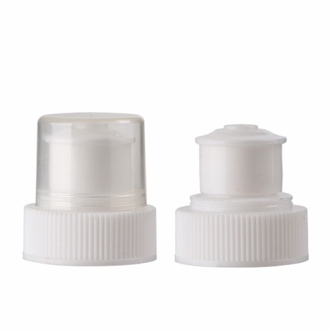 कारखाने 38 मिमी 28 मिमी प्लास्टिक स्क्रू पानी की बोतल पुश पुल कवर कैप थोक के लिए डबल सुरक्षा अंगूठी के साथ